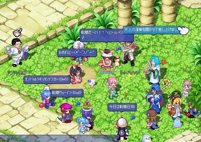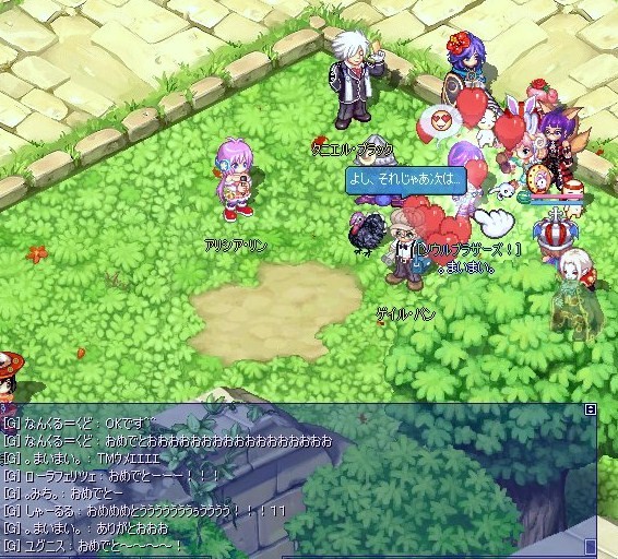 試練終了の報告をし、そのときInしていたギルメン皆で庭園に集まってお祝いをしてくれました♪^^皆さん感謝ですー><